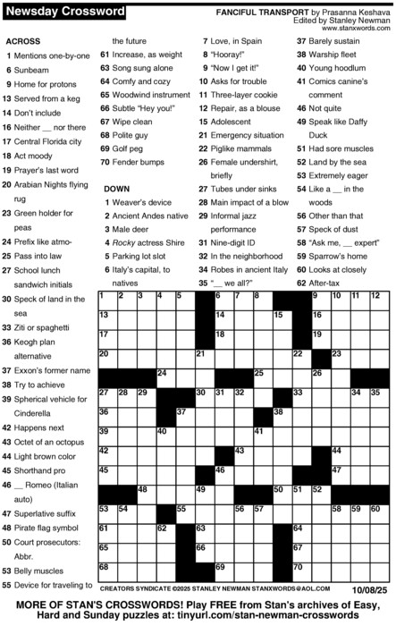 Because free access to the content of Newsday.com is available only to Newsday subscribers and customers of Cablevision (Newsday’s owner), many thousands of puzzle fans, spanning six continents, get the Newsday Crossword free every day right here at Stan’s Crossword Land.