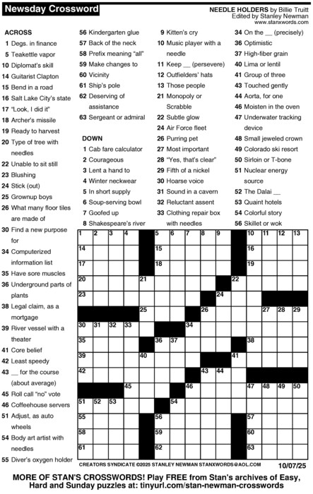 Stan Newman crafts a fresh and challenging puzzle every day of the week! Stay sharp and challenge yourself to solve each and every one.